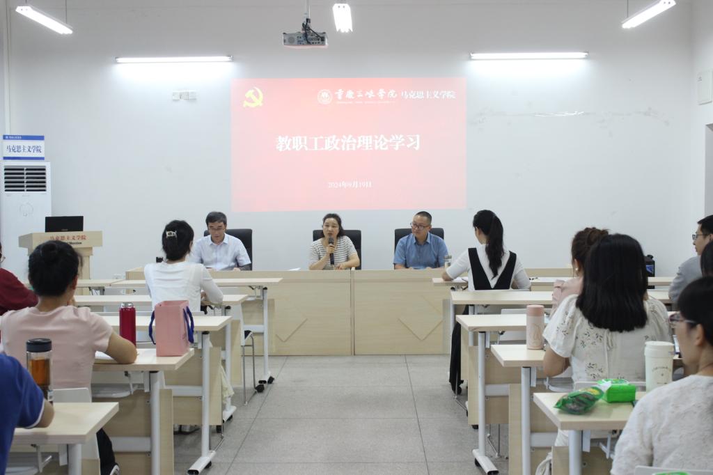 9月19日下午,我院在博学楼3栋424会议室召开政治理论学习暨党纪学习教育总结会,会议由党总支书记兼副院长秦勤主持,全体教职工参会。