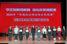 12月30日晚,必赢nn699net 2024年“思想政治理论综合实践课”优秀成果展演暨表彰会在图书馆报告厅隆重举行。学校党委书记李廷勇、重庆市大中小学思政课一体化重点建设共同体负责人臧小林出席活动,与教务处、学工部、团委等职能部门负责人及师生代表400余人共同见证思政实践育人成果。本次活动全面贯彻党的二十届三中全会精神和习近平总书记关于加强思政课建设的重要指示精神,集中展现我校深化思政课“三维分层”教学改革的创新成效。