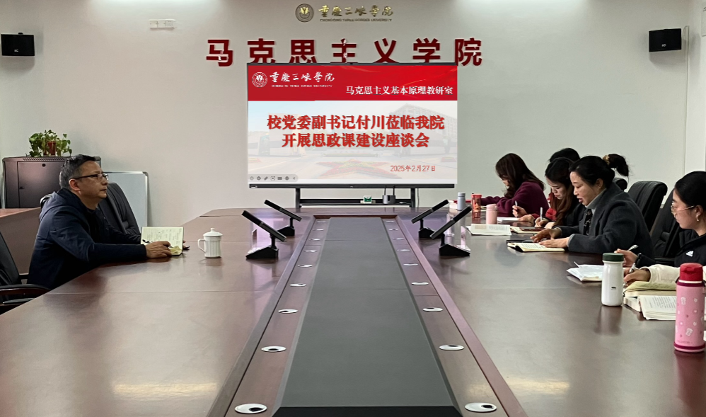 2月26日,学校党委副书记付川到我院开展调研工作并主持召开思政课建设工作座谈会。学院院长兼党总支副书记徐承英及马克思主义基本原理教研室全体教师参与座谈。