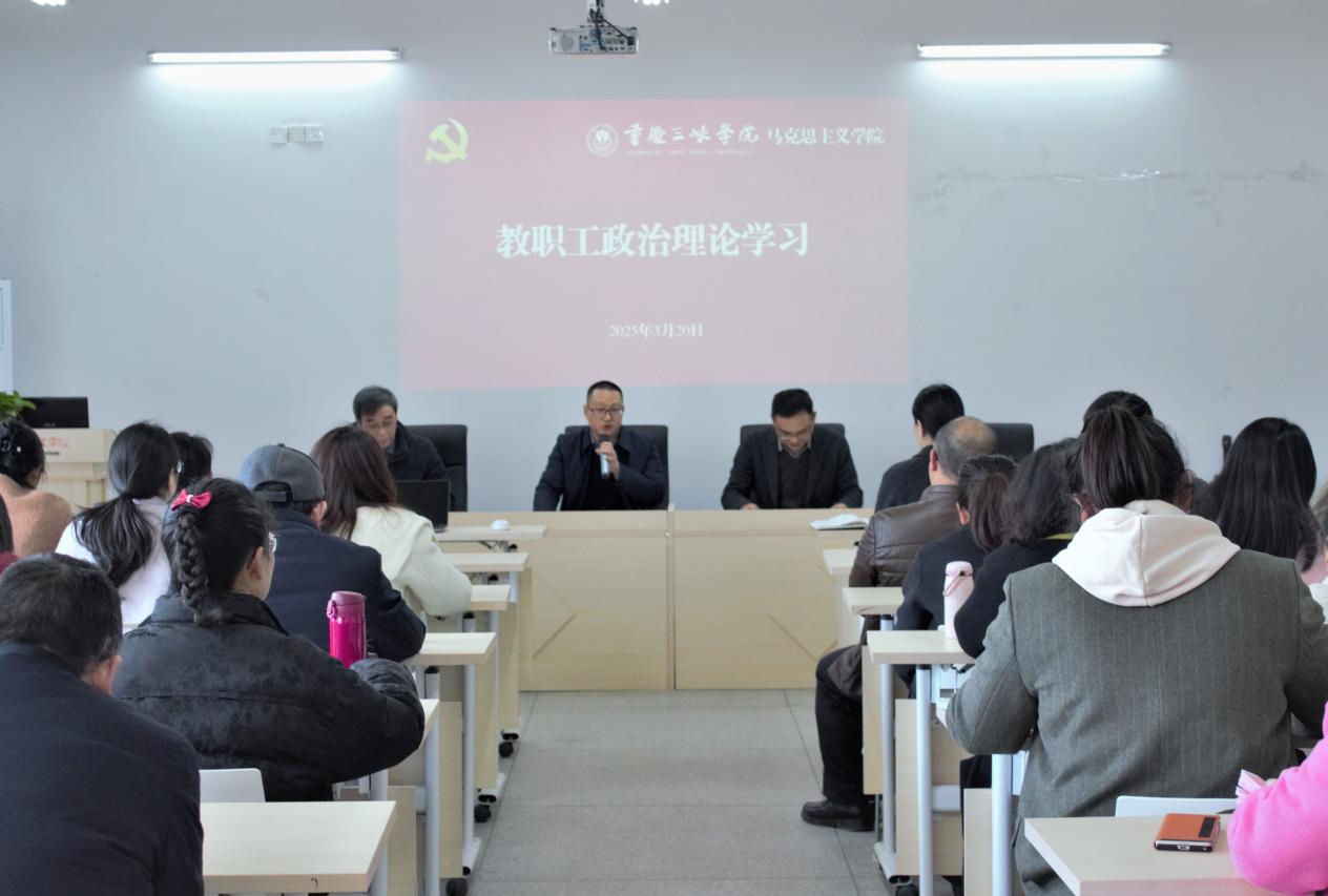 3月20日下午,我院在博学楼3栋424会议室召开政治理论学习暨教职工会议,传达学习2025年全国两会精神并布置近期重点工作。会议由学院党总支书记兼副院长秦勤主持,全体教职工参会。