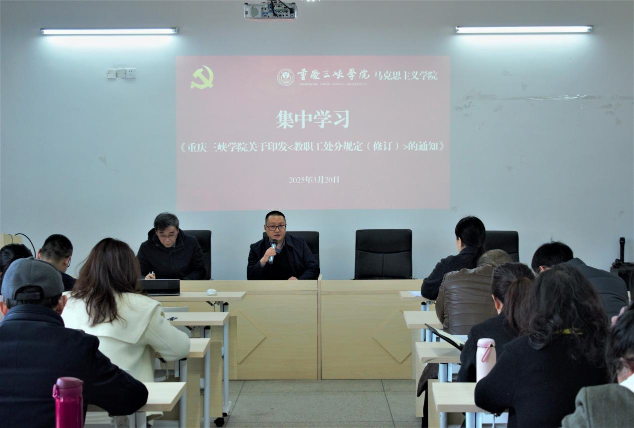 会上,学院还组织全体教职工集中学习了《必赢nn699net关于印发<教职工处分规定(修订)>的通知》等文件精神。