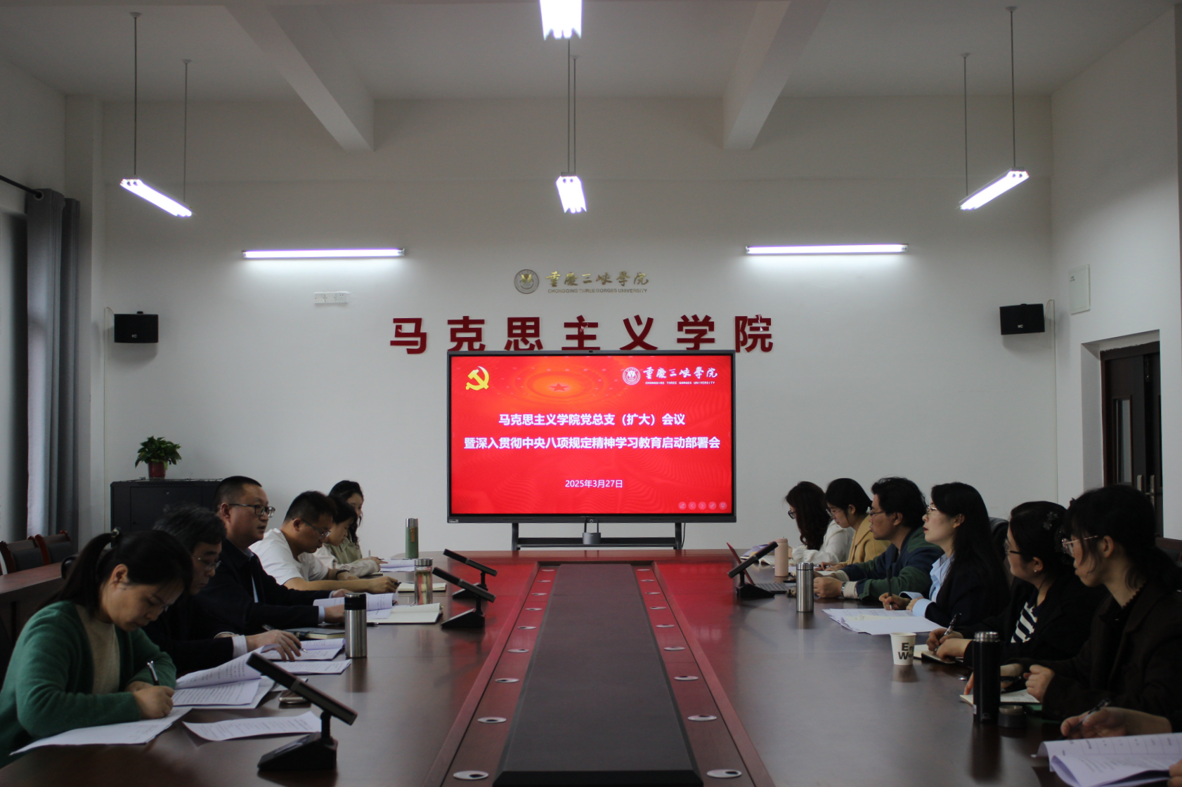 3月27日,学院党总支召开深入贯彻中央八项规定精神学习教育启动部署会。会议由学院党总支书记秦勤主持,党总支副书记、委员及各党支部书记、委员参加会议。