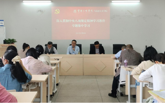5月8日下午,我院在博学楼3栋424会议室召开深入贯彻中央八项规定精神学习教育专题学习会。会议由学院党总支书记秦勤主持,全体教职工党员参会。