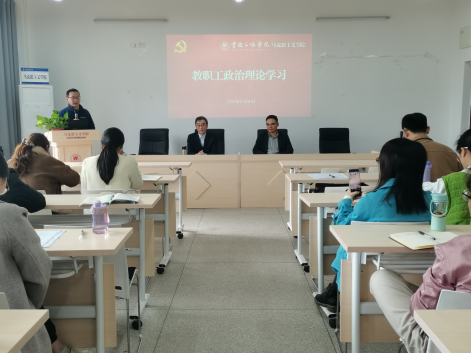 为深入学习贯彻党的二十届四中全会精神,推动理论学习走深走实,10月30日下午,马克思学院党总支组织全体党员开展专题政治理论学习,会议由学院党总支书记任鹏主持,学校教职工政治理论学习列席旁听工作组成员曾成明和专职组织员旷旭东列席旁听。