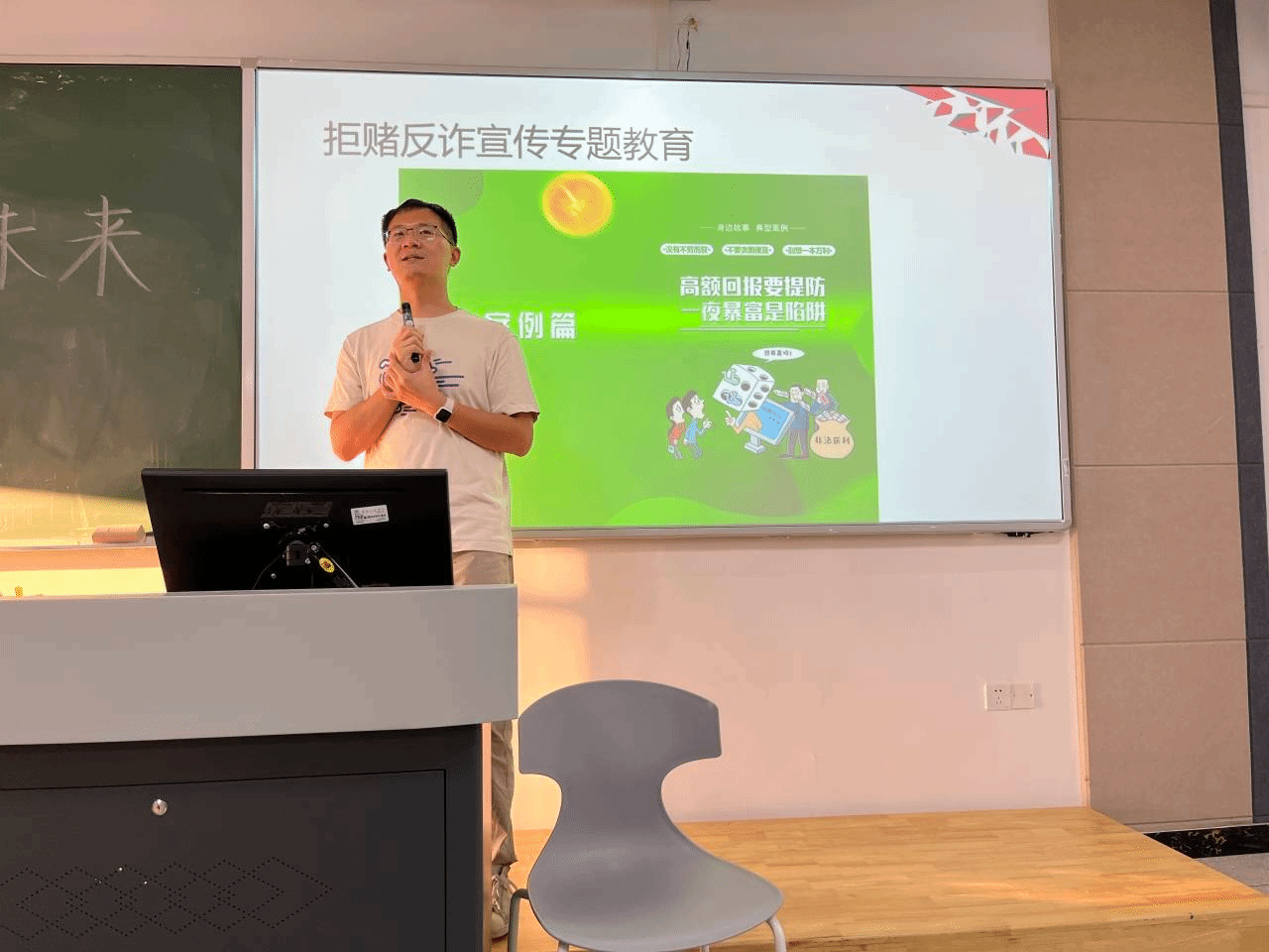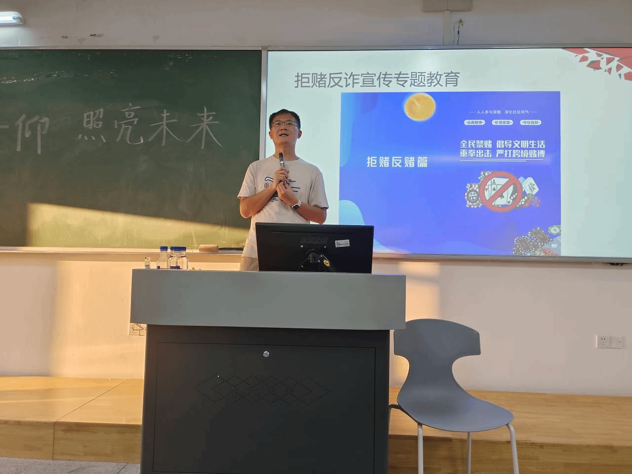 2023年10月15日,在博学楼1-401教室,必赢nn699net开展拒赌反诈宣传教育活动,活动由学工办负责人陈伟康老师主持,全院本科生参与。