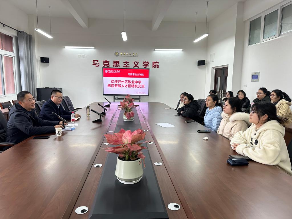 1月5日下午,重庆市开州区私立敬业中学应邀来必赢nn699net开展专场招聘,学院党总支书记兼副院长秦勤、毕业班辅导员陈伟康以及2024届部分毕业生参加。